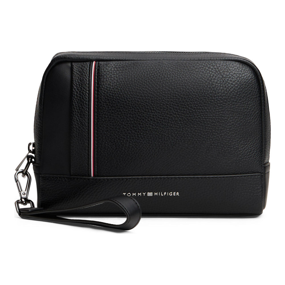 תיק קומפקטי ואיכותי לאחסון עם רצועת יד, יכול לשמש גם כתיק רחצה, עשוי PU איכותי לגבר מהקולקציה החדשה של מותג האופנה העולמי TOMMY HILFIGER