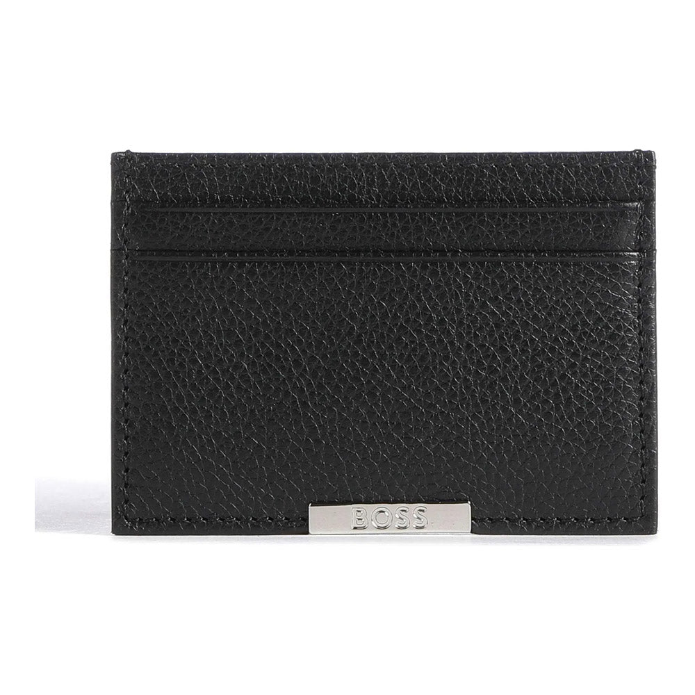 סט מתנה יוקרתי לגבר מבית BOSS, הכולל שני ארנקי כרטיסים איכותיים ונוחים, עשויים מעור איכותי בצבע שחור.
