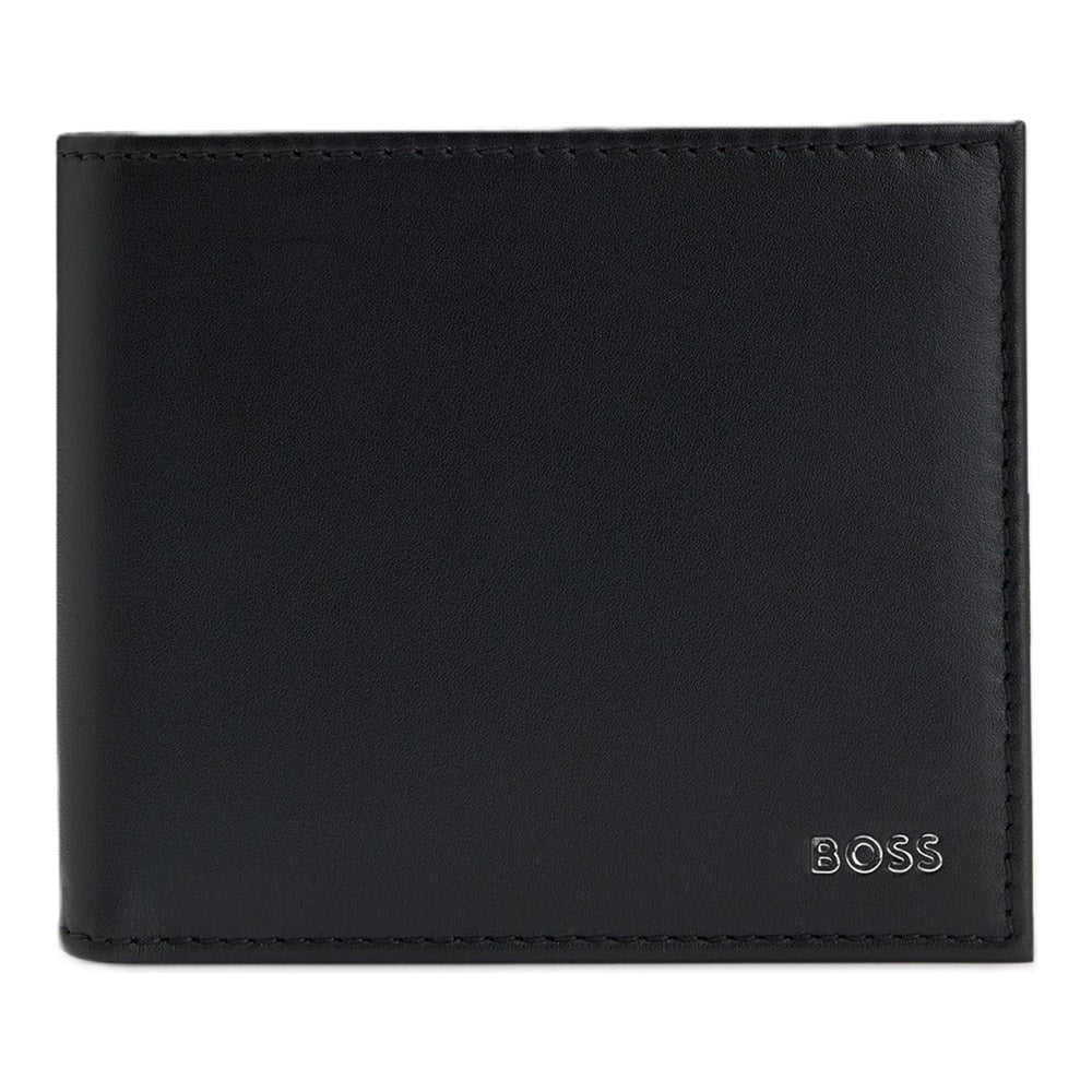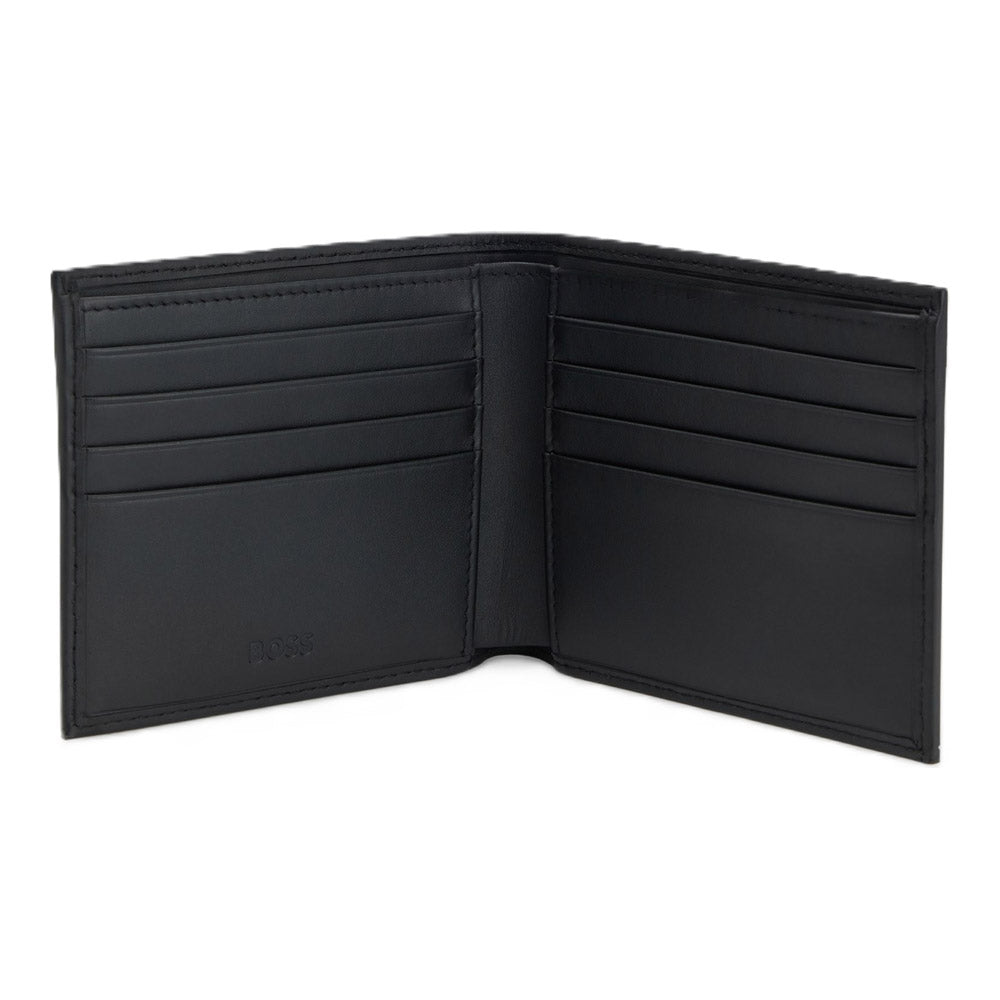 ארנק מעור שחור איכותי לגבר מהקולקציה החדשה של מותג האופנה העולמי BOSS ממותג בחלק הקדמי, עם מקום ל-8 כרטיסי אשראי ו-2 תאים לשטרות.