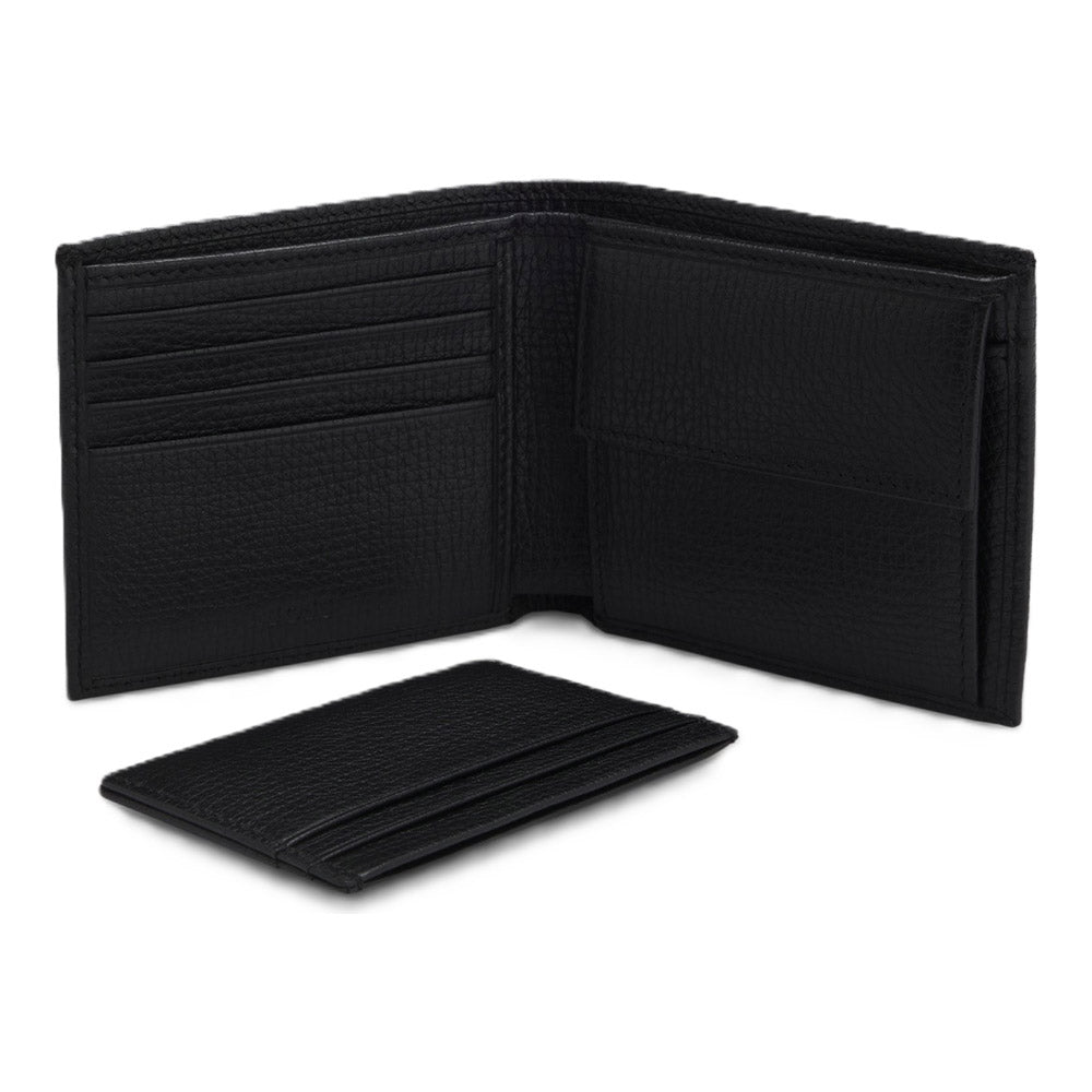 הסט כולל ארנק סופ"ש קלאסי עם מקום ל-4 כרטיסים וארנק נפתח עם מקום לעד 4 כרטיסים, תא למטבעות ותא לשטרות, בעיצוב אלגנטי. שני הפריטים ממותגים עם לוחית BOSS כסופה המעניקה מראה יוקרתי.
