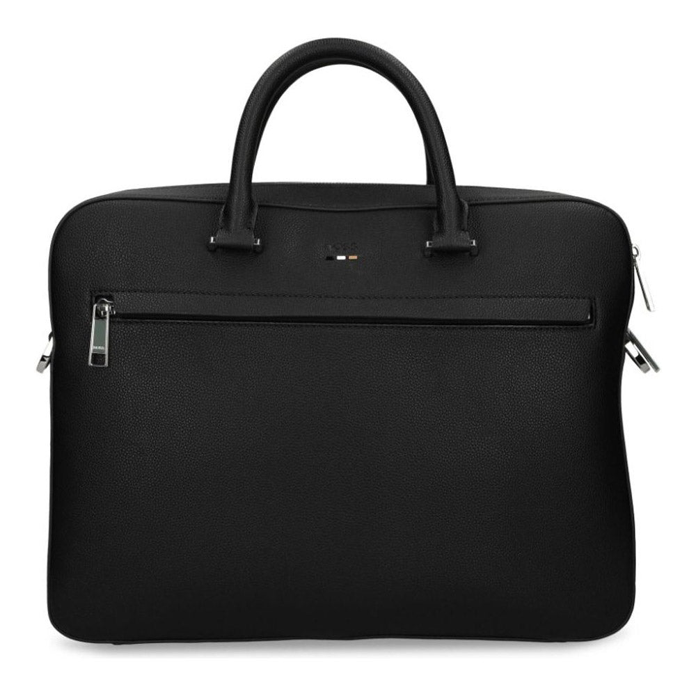 תיק עסקים איכותי, עשוי בד בשילוב PU, בצבע שחור של המותג היוקרתי BOSS, כולל תא מרכזי עם סגירת רוכסן, תא מרופד המתאים למחשב נייד, כיס פנימי עם רוכסן, כולל ידית בחלק האחורי, 2 ידיות נשיאה ורצועת כתף מתכווננת וניתנת להסרה.