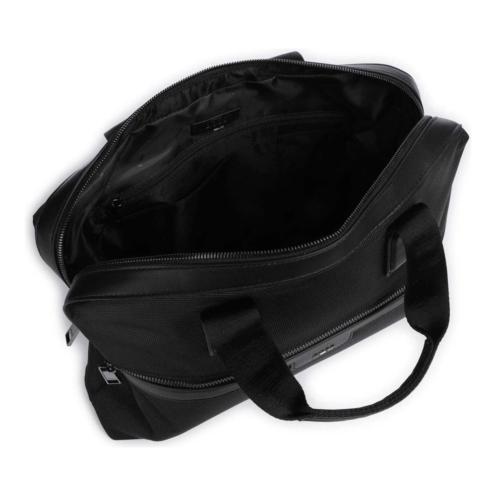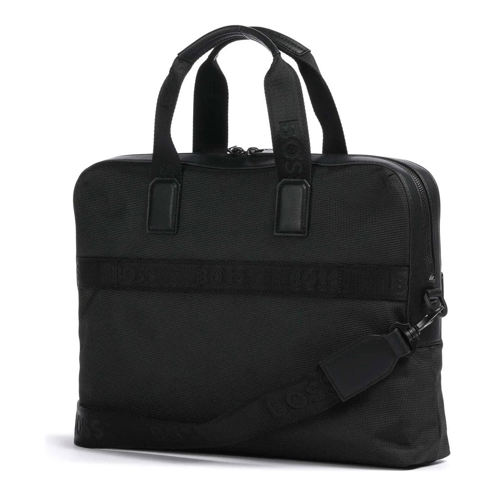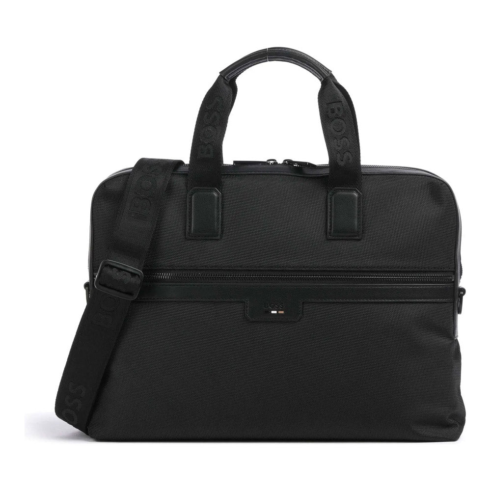תיק עסקים איכותי, עשוי בד בשילוב PU, בצבע שחור של המותג היוקרתי HUGO, כולל תא מרכזי עם סגירת רוכסן, תא מרופד המתאים למחשב נייד, כולל ידית בחלק האחורי, 2 ידיות נשיאה ורצועת כתף מתכווננת וניתנת להסרה.