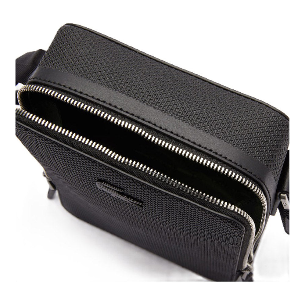 תיק צד לגבר מעור איכותי, בצבע שחור מהקולקציה החדשה של מותג האופנה העולמי LACOSTE