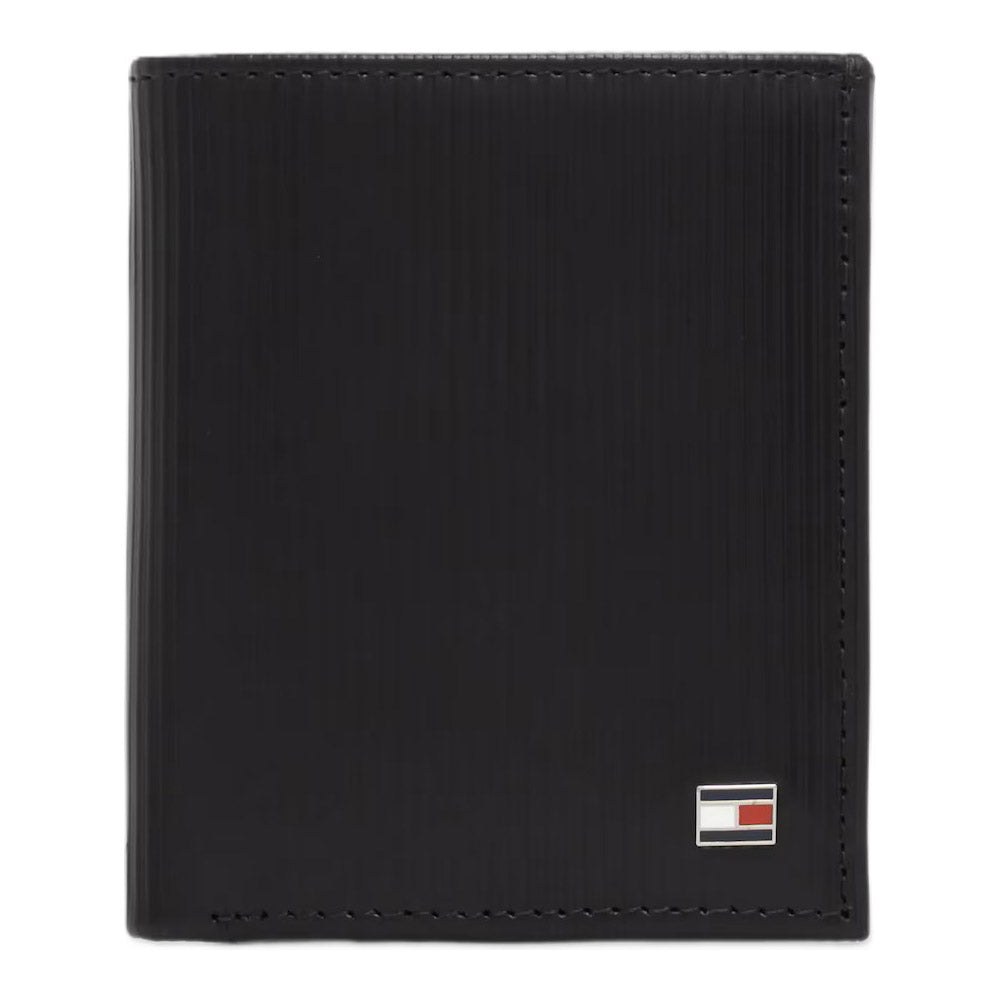ארנק איכותי ונוח לגבר מעור שחור איכותי, ממותג Tommy Hilfiger בחלק הקידמי, עם מקום ל-3 כרטיסים, תא למטבעות ו-2 תאים לשטרות מהקולקציה החדשה של מותג האופנה היוקרתי Tommy Hilfiger.